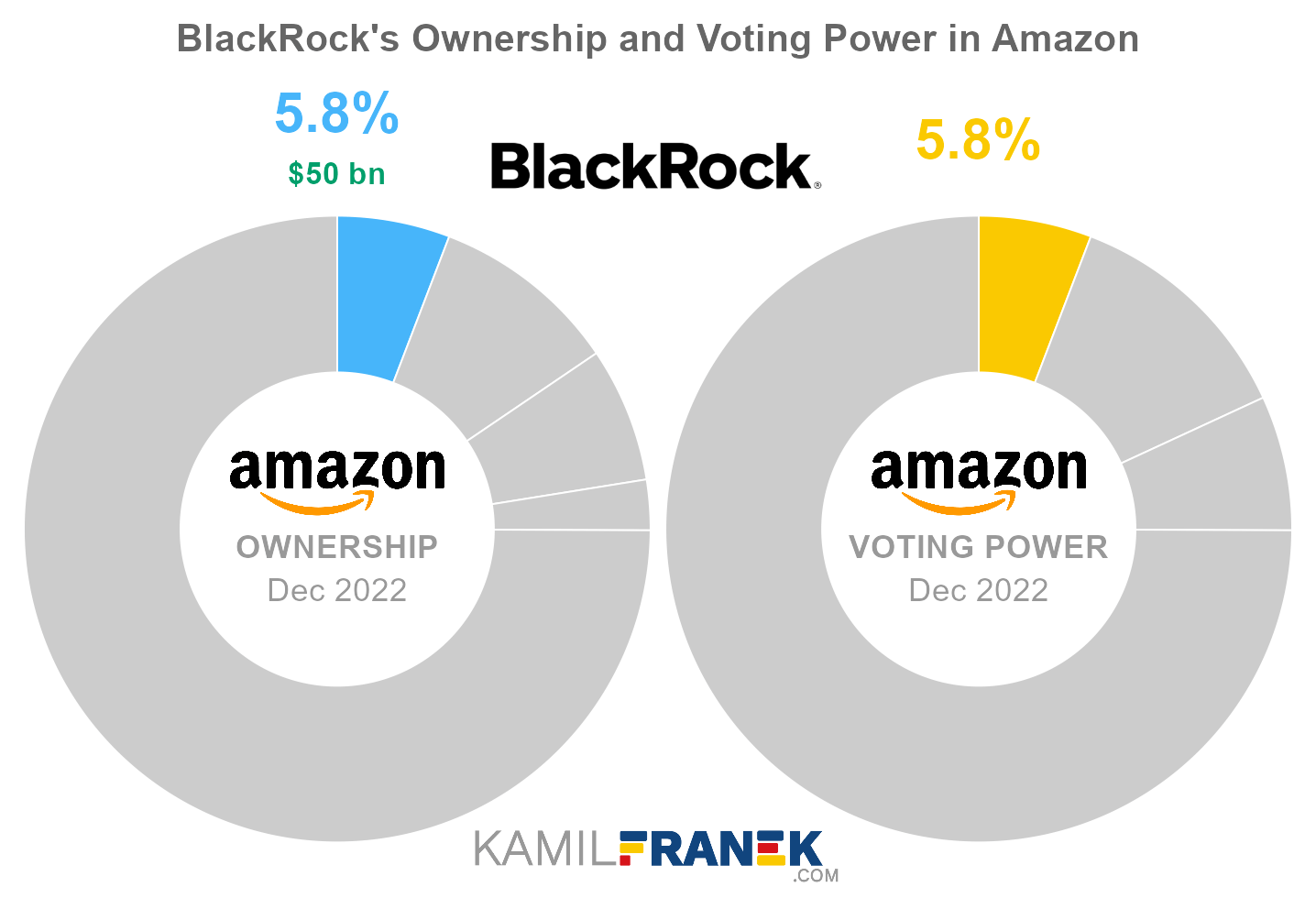 BlackRock owned 596 million shares in Amazon and controlled 596 million shareholder votes as of December 2022.
